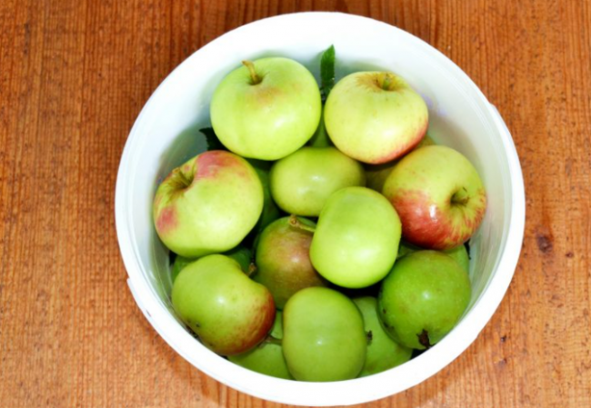 - Яблоки, а также все листочки хорошо промываем под проточной водой.