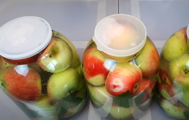 - В процессе брожения яблоки впитают в себя заливку, поэтому уровень жидкости в банке снизится. Перед тем как отправить их на хранение в прохладное место, доливаем воду так, чтобы яблоки были полностью покрыты.