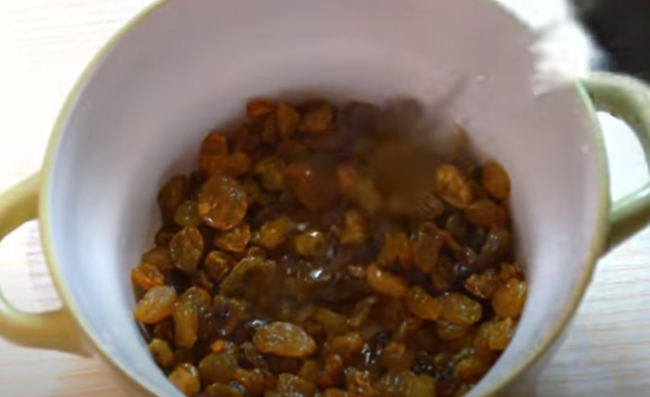 - В качестве добавок используем вяленую вишню и цукаты, которые немного измельчаем. А также изюм, его заливаем кипятком на 10 минут, чтобы он стал мягким. Много добавок не стоит использовать, иначе они не дадут тесту подняться.