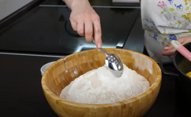 - Сухие дрожжи смешиваем с мукой и постепенно — с жидкими ингредиентами. Так как в рецепте используются сухие дрожжи, то опару готовить необязательно. Перед приготовлением можно проверить их качество. Для этого размешиваем их в теплом молоке и оставляем на 10 минут. Появившаяся пенная шапочка говорит о том, что дрожжи хорошие.