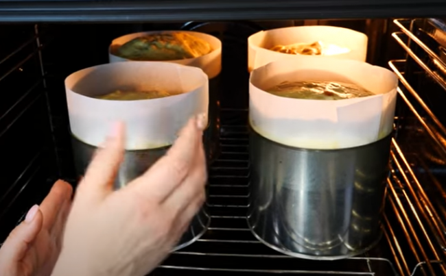 - Даем тесту хорошо подняться, затем формочки ставим в духовку на 40 минут (температура 180 °С).