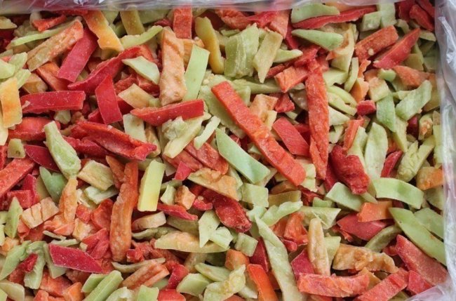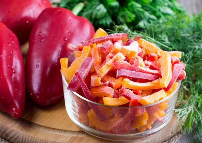 Для заморозки болгарского перца в виде нарезки можно использовать плоды с трещинками, вмятинами и даже подпорченные. И такая овощная заготовка идеально подходит для первых блюд, запеканок, салатов.