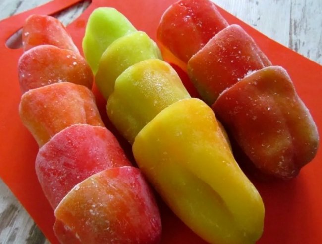 - На зиму сладкий перец можно заморозить целыми плодами или в виде нарезки.