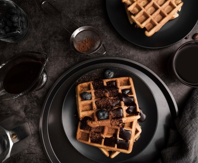 Смешайте все ингредиенты до однородности. Выпекайте в вафельнице 3–4 минуты до золотистой корочки. Подавайте с ягодами, медом или авокадо.