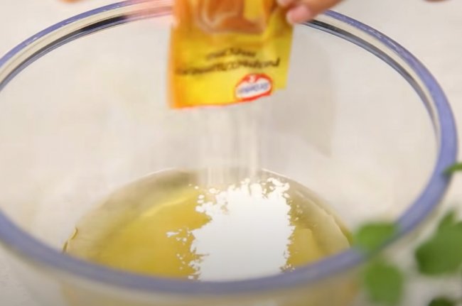 - Теперь гасим соду соком лимона, отправляем в миску, еще раз перемешиваем.