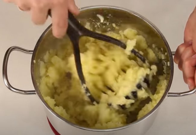 - Картофель чистим, варим в подсоленной воде до готовности и пюрируем.