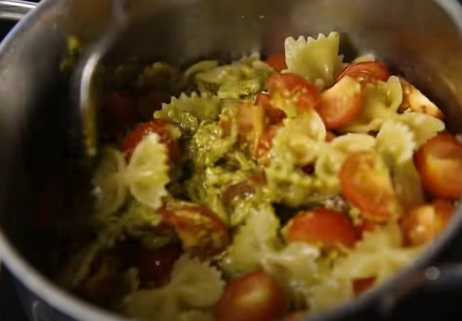 Ужин будет в итальянском стиле: макароны с помидорами и соусом песто – быстро, просто, но вкусно. А к ним подойдет легкий салат из свежих овощей с авокадо.