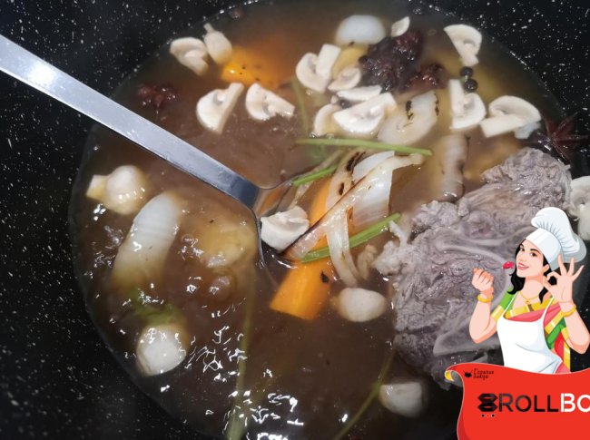 Ингредиенты Бульон: говяжьи кости - 1 кг морковь - 50 гр. репчатый лук - 50 гр. палочки корицы - 2 шт. (положила 1/3 палочки) бадьян - 5 шт. гвоздика - 5 шт. душистый перец - 5 шт. стебли кинзы - 10 гр. шампиньоны - 20 гр. сахарный песок - 25 гр. соль - 5 гр. лимон - 20 гр. рыбный соус - 25 гр.