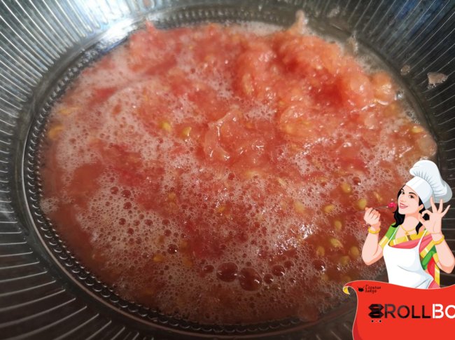 Помидоры натереть на крупной тёрке.