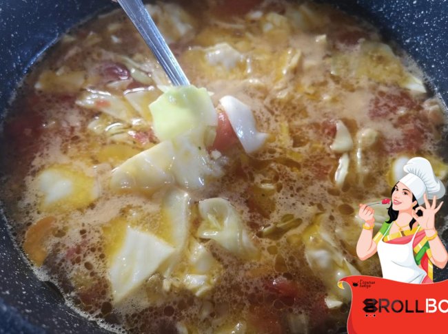 Довести до кипения. Добавить капусту, варить 20 минут.