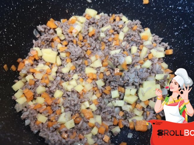 Фарш с луком переложить в кастрюлю, где будете варить суп, добавить морковь и картофель, нарезанные мелкими кубиками.