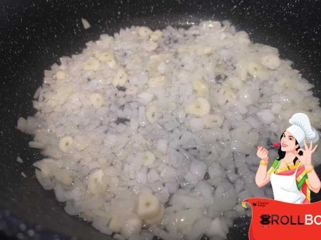 Сначала очистила репчатый лук, нарезала его на мелкие кубики, и вместе с чесноком, нарезанным слайсами, обжарила до прозрачности на кокосовом масле (можно на любом растительном).