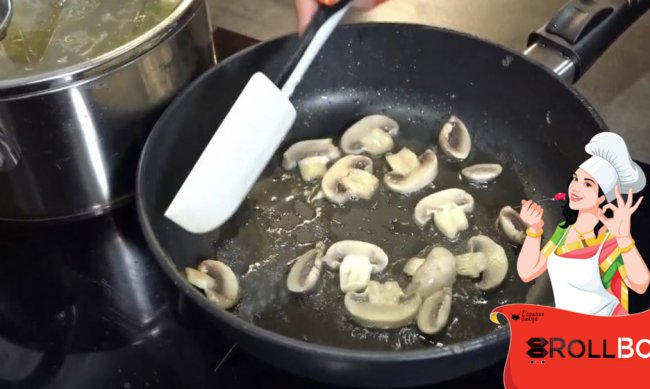 Добавить шампиньоны. (Отдельно можно оставить красивые для подачи)