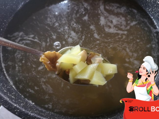 Потом в грибном бульоне варила мелко нарезанный картофель... до готовности... минут 25.