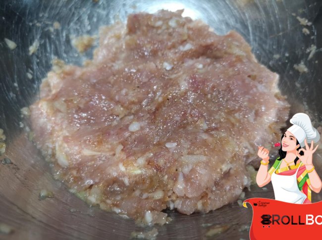 Делаем фрикадельки. В куриный фарш добавляем одну измельченную в блендере луковицу. Солим, перчим. Добавляем сушеный чеснок и сладкую паприку. Перемешиваем.