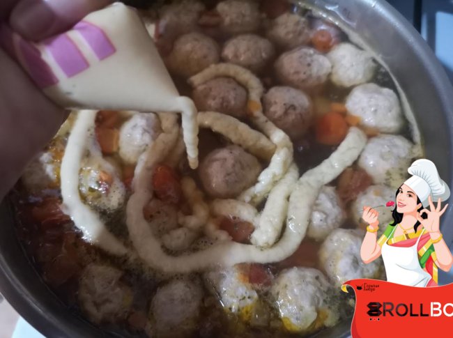 Когда картофель уже сварился, добавляем в суп фрикадельки в кипящую воду. Когда их туда забросили, сразу суп не перемешивайте, дайте фрикаделькам схватиться.