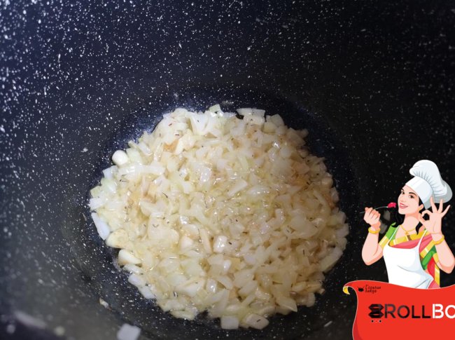 Лук, имбирь и чеснок нарезаем произвольно и обжариваем на топленом масле с тимьяном в кастрюле.