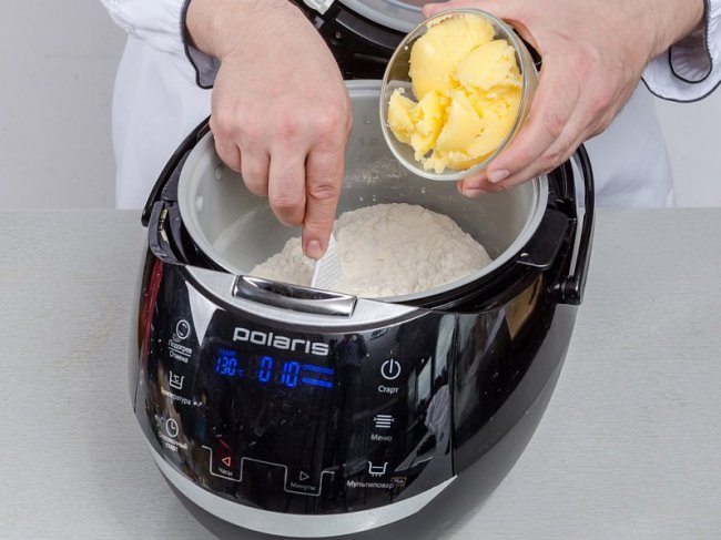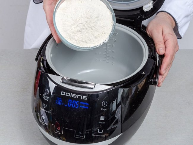 Выставить режим «Мой рецепт plus (мультиповар)», температуру 130°С, время 20 мин. Муку просеять через сито в чашу мультиварки и обжаривать, помешивая, 5 мин.