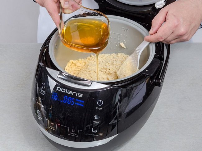 Рецепт: Армянская халва на меду в мультиварке Ингредиенты 500 г муки 200 г топленого масла 200 г меда Режим: Мой рецепт plus (мультиповар) Время: 20 минут Порции: 15 Приготовление Шаг 1 Подготовить мультиварку и ингредиенты. Шаг 2 Выставить режим «Мой рецепт plus (мультиповар)», температуру 130°С,