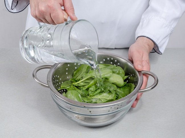 1 У петрушки и крапивы удалить жесткие стебли. Листья промыть, поместить в металлический дуршлаг или сито и обдать большим количеством кипятка.