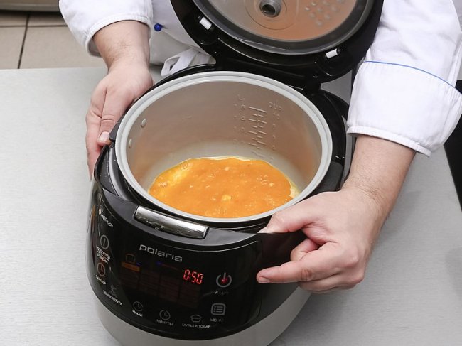 Выложить тесто в мультиварку и разровнять поверхность. Сверху выложить абрикосовое пюре. Готовить в режиме «Выпечка» 50 мин. Дать полностью остыть.