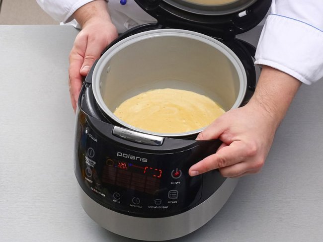 Выложить тесто в смазанную маслом чашу мультиварки и готовить в режиме «Выпечка» 35 мин.