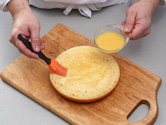 Остывший кекс вынуть из чаши, сделать на поверхности проколы вилкой и облить оставшимся соком.
