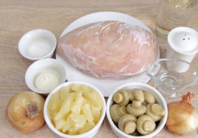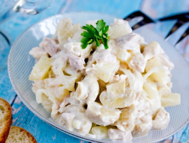 Салат с курицей, ананасами и грибами