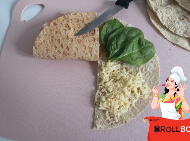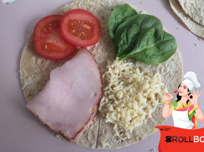 Раскладываем начинку... у меня мясо, томаты, шпинат и в самом конце тертый сыр... Можно к мясу добавить соус, а к зелени авокадо... Все на ваш вкус!