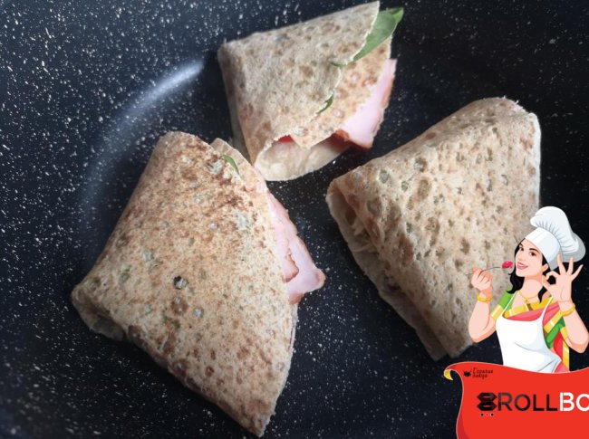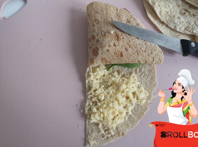 Сворачиваем по кругу в треугольник и обжариваем на чуть смазанной растительным маслом сковороде с двух сторон... начинайте с той стороны, где сыр, он как бы склеит разрез.