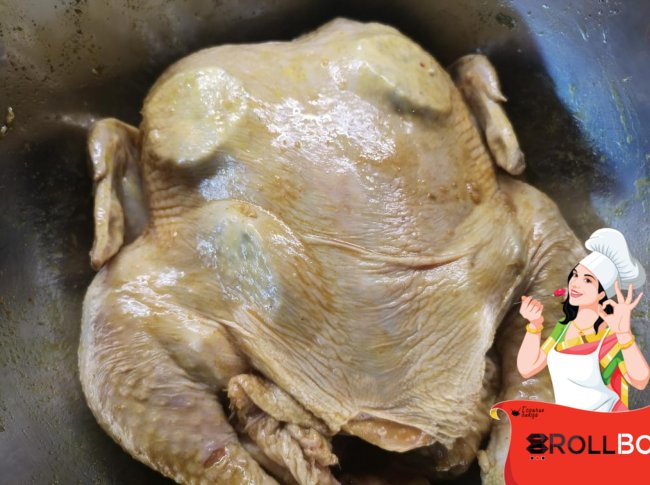 2. Курицу помыть, обсушить бумажной кухонной салфеткой. Смешать все оставшиеся ингредиенты для маринада. Полить курицу маринадом, хорошо обмазать её и оставить мариноваться на 2-4 часа. Можно оставить на ночь.