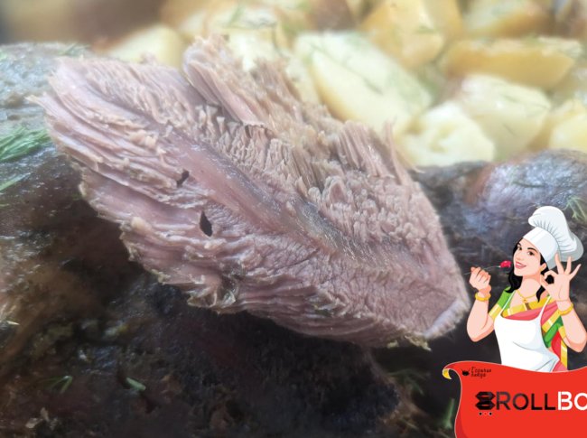Мясо наколоть ножом, натереть смесью чеснока, соли, перца.