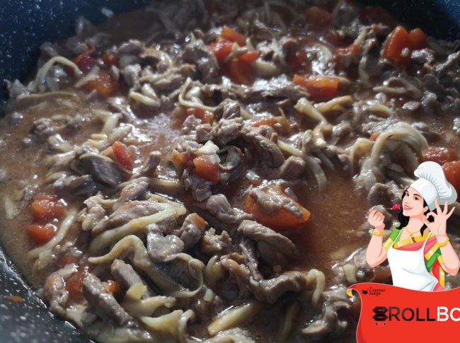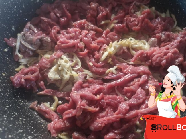 Говядину режем очень тонкой соломкой... берите мясо то, что сверху туши и не участвует в движении... Не знаю. правильно ли я объяснила Не используйте грудинку, пашину, голень, они для тушения.