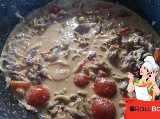 Ингредиенты паста - 450 гр. (у меня баветте) репчатый лук - 0,5 луковицы чеснок - 2 зубчика вешенки - 150 гр. мякоть говядины - 500 гр. томаты в собственном соку - 200 гр. белое сухое вино - 200 гр. сливки 33% - 150 гр. томаты черри - 10 шт. соль, молотый черный перец по вкусу зелень петрушки - 2
