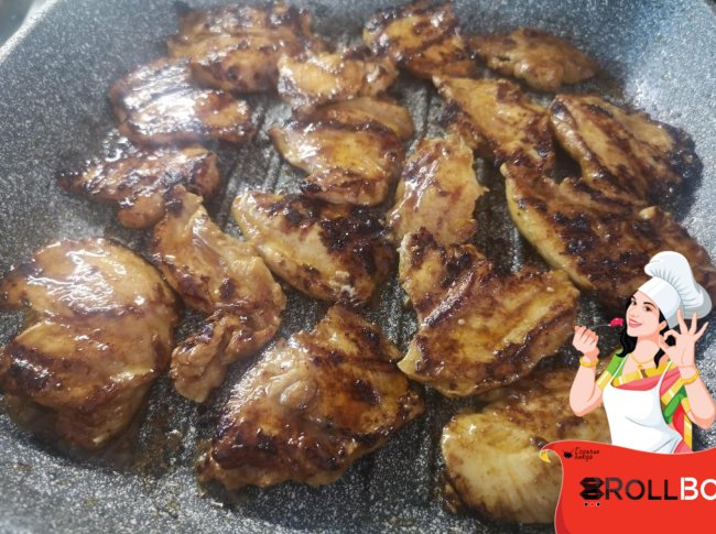 Обжарим кусочки курицы на растительном масле с двух сторон... примерно по 2,5 минуты с каждой стороны.