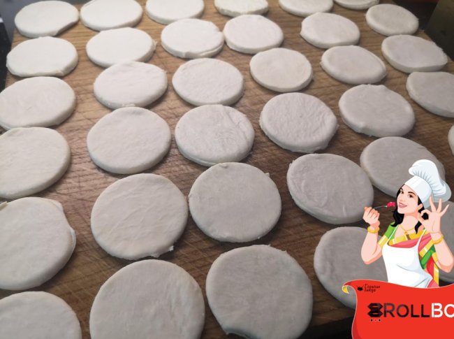 Тесто разморозила. При помощи стакана вырезала небольшие кругляшки...