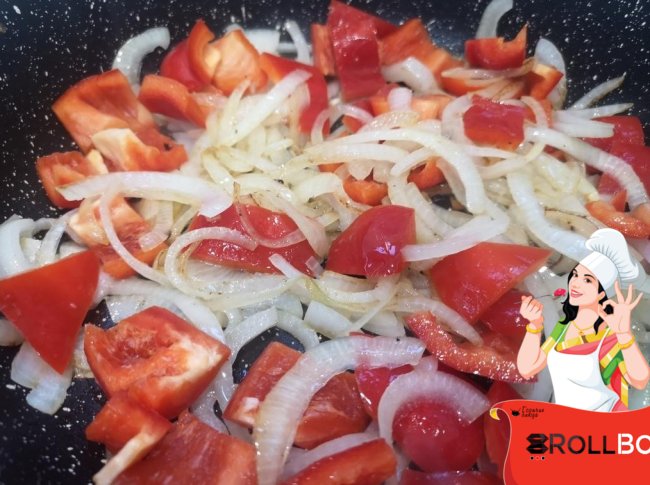 Добавила болгарский перец, нарезанный небольшими квадратиками.