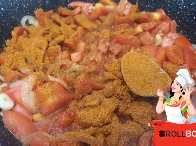 Положила к овощам обжаренную курочку. Добавила 2 ст.ложки молотой паприки, соль по вкусу...