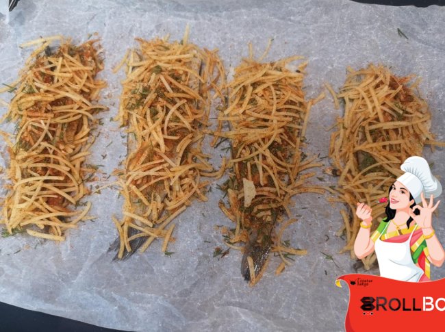 Тогда я на противень постелила пергаментную бумагу... Под каждую рыбку насыпала эту сырную панировку, уложила саму рыбу и сверху опять посыпала сыром с укропом.