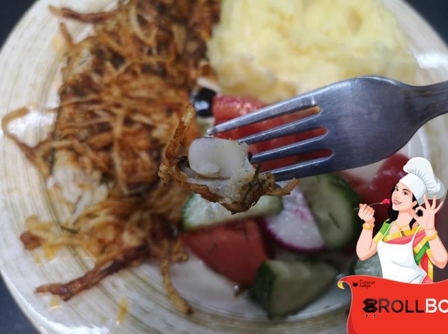 Затем надо обвалять в этой сырной панировке рыбку с двух сторон, но у меня сыр не хотел прилипать