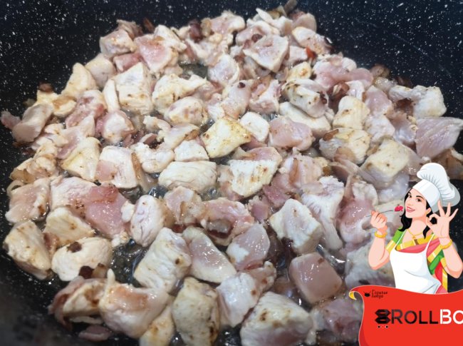 Влить в сковороду воду и тушить под крышкой до готовности курицы.