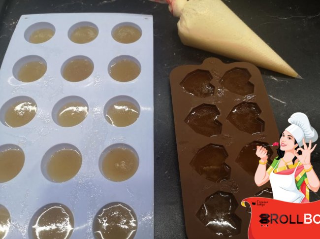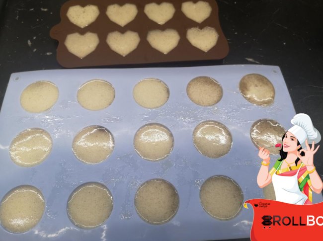 7. Немного подогреть в микроволновке взбитую часть и заполнить формы вторым слоем.