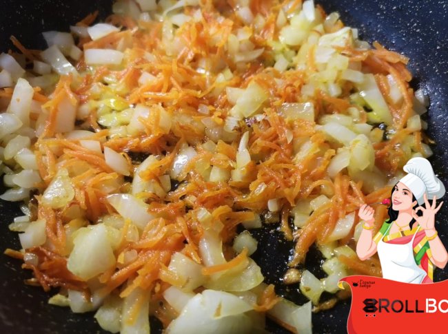 Затем сделала зажарку из нарезанного репчатого лука и моркови, натертой на терке.