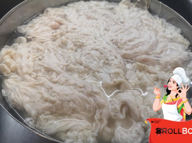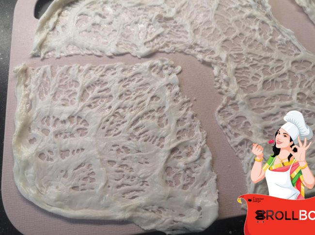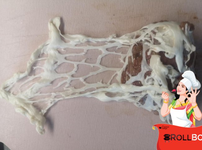 Сначала я замочила жировую сетку в воде где-то на 4 часа. Воду меняла каждый час. На фото у меня намного больше сетки, чем надо для рецепта