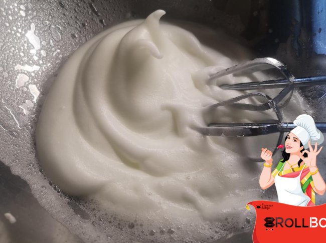 Отдельно взбиваем белки. После появления пены добавляем сахарный песок и хорошо взбиваем до крепкой устойчивой пены.