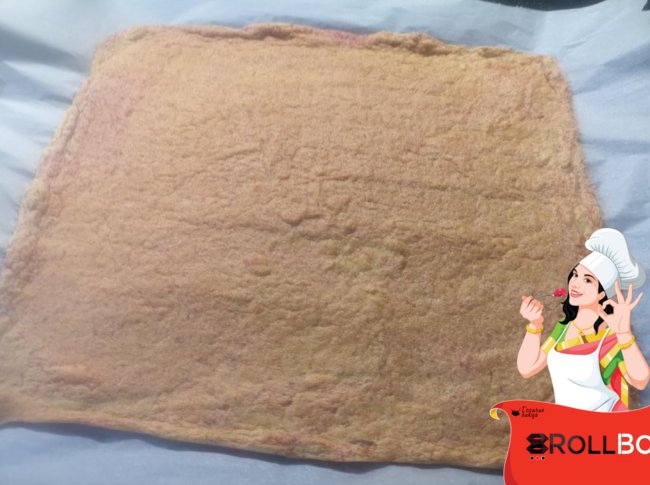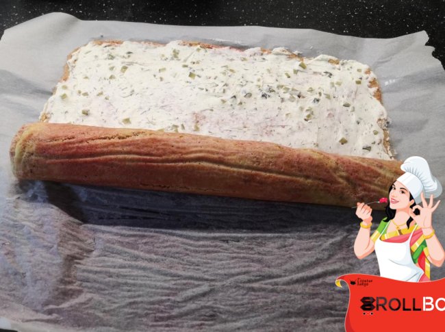 Сворачиваем в рулет, помогая себе пергаментной бумагой.