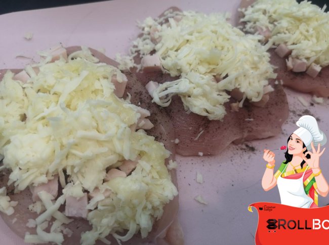 Ингредиенты куриные грудки - 3 шт. (800 гр._ ветчина тертый сыр сацебели растительное масло соль, молотый черный перец по вкусу Приготовление Грудки разрезала вдоль, не прорезая до конца и раскрыла как книжку. Посолила и поперчила лишь внутри, куда будем класть начинку. У меня была нарезанная
