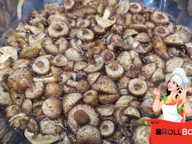 Сначала грибы надо замочить в воде часа на два... Губкой протираем шляпки, убирая чешуйки.