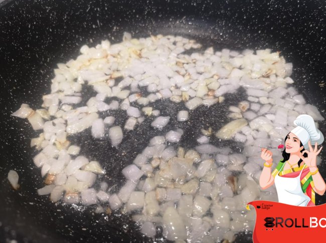 Репчатый лук режем кубиками, обжариваем на растительном масле до прозрачности.