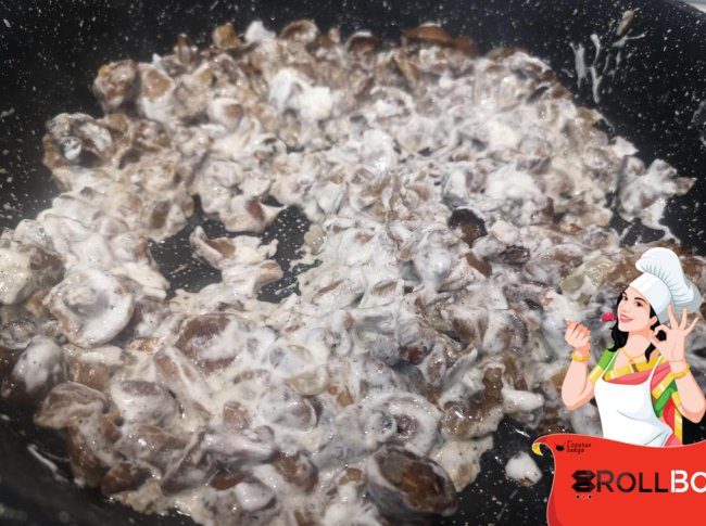 Добавляем 2 ст.ложки сметаны (у меня 20% ). У чешуйчатки есть свой собственный аромат, сметана его смягчает.